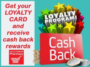 Receive cash back rewards from Geneva Pharmacy in George. Join their Loyalty Card System and accumulate real cash back rewards when you buy any product at the pharmacy. Ask for your loyalty card when you visit the pharmacy and start saving!